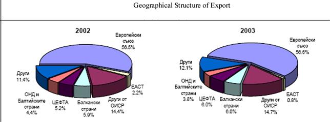 Только в Европейский Союз Болгария поставляет больше всего готовой продукции, основной же статьей экспорта со всеми другими партнерами является группа товаров сырье и материалы. Общие тенденции экспорта Болгарии предоставлены в Таблице.