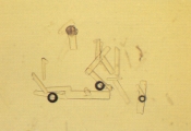 Рис. 31. Микрофотография кристалла, напоминающего лейциновый из мочевого осадка 11-летнего самца метиса (не окрашено, увеличение Х 160).