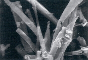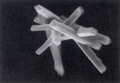 Рис. 39. Сканированная электронная микрофотография струвитных кристаллов, описанных в рис.38 (увеличение Х 1,800).