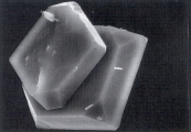 Рис. 61. Сканированная электронная микрофотография кристалла мочевой кислоты алмазной формы в закисленном мочевом осадке собаки, описанной в рис. 43 (увеличение Х 2,340).