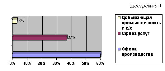 Почти все крупнейшие ТНК по национальной принадлежности относятся к «триаде» – трем экономическим центрам: США, странам ЕС и Японии. В последние годы активно развивают свою деятельность на мировом рынке транснациональные корпорации новых индустриальных стран. Отраслевая структура ТНК достаточно широка. 60% международных компаний заняты в сфере производства (прежде всего они специализируются на электронике, автомобилестроении, химической и фармацевтической промышленности), 37% - в сфере услуг и 3% - в добывающей промышленности и сельском хозяйстве (см. диаграмму 1).
