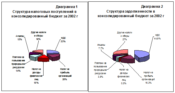 На диаграмме 1 представлена структура поступлений федеральных налогов и сборов в консолидированный бюджет Российской Федерации за 2002 год.
