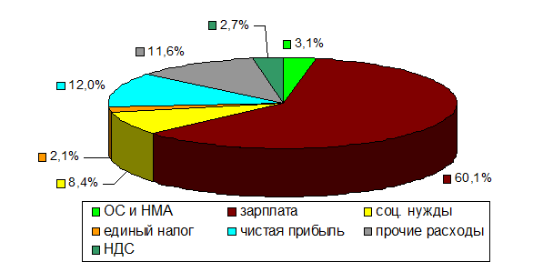 Рисунок 2.1 - Структура выручки в 2004 г.