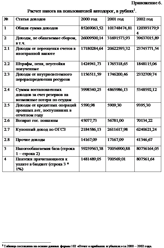 1 Таблица составлена на основе данных формы 102 «Отчет о прибылях и убытках» за 2000 – 2002 года.