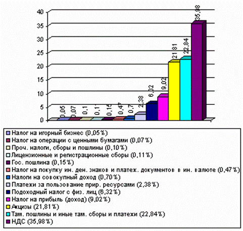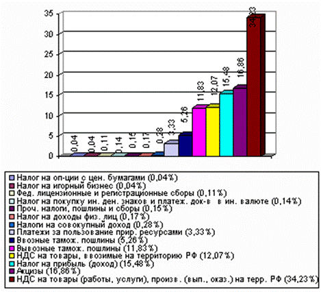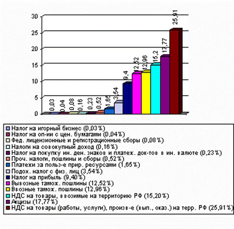 Структура налоговых доходов в федеральном бюджете на 2001 год