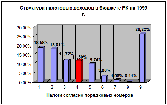 Структура налоговых доходов в федеральном бюджете на 1999 год