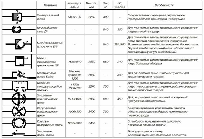 В таблице 1.1 приведены схемы и краткие характеристики различных вариантов шлюзов.