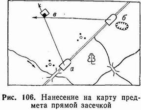 Все это вызывает необходимость дополнительного обследования местности, проведения разведки отдельных ее объектов и нанесения полученных данных на карту. Приемы нанесения на карту отсутствующих на ней объектов местности применимы также и для нанесения на карту ориентиров, целей и боевых порядков.