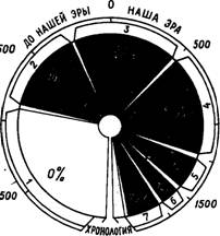 Рис. 2 Условная доля монголоидных элементов у населения Казахстана в различные культурно-исторические эпохи по данным краниологии.