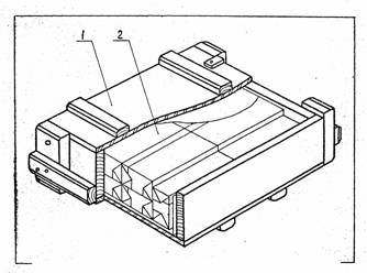 Влагонепроницаемые пакеты с патронами укладываются в ящик в котором на дно, по стенкам и под крышку помещаются прокладки из водонепроницаемой бумаги с двусторонним или односторонним покрытием парафин-полиизобутиленовой смесью. Прокладки стороной с парафин-полиизо-бутиленовым покрытием обращены :дну, стенкам и крышке ящика.