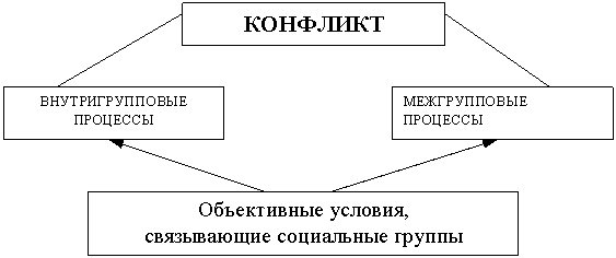2) внутригрупповые процессы, в том числе конфликтные. Протекающие в каждой из взаимодействующих групп;