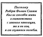 Скотт и два последних члена его экспедиции смогли продвинуться на север лишь немногим дальше, прежде чем окончательно сдаться. Обратное путешествие длилось уже два месяца, а они все еще находились на расстоянии 240 километров от базового лагеря. Это место и было местом их гибели. Мы знаем всю эту трагическую историю только потому, что они потратили последние часы жизни на внесение записей в дневники. Среди последних слов Скотта были такие: «Мы умрем как джентльмены. Думаю, это покажет, что Дух отваги, силы и стойкости не покинул человеческую расу». Скотт обладал мужеством, но не качествами лидера. Поскольку этот храбрый человек был не способен жить в соответствии с законом навигации, то и он сам, и его спутники погибли. Поборники нуждаются в таких лидерах, которые способны эффективно прокладывать для них маршрут. Когда доводится столкнуться с ситуацией, где выбор стоит между жизнью и смертью, указанная потребность становится до боли очевидной. Но даже в тех случаях, когда последствия не столь серьезны, эта надобность столь же велика. Истина такова, что каждый может вращать штурвал корабля, но для прокладывания курса требуется лидер. Таков закон навигации.
