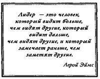 Председатель правления электротехнического гиганта «Дженерал электрик» Джек Уэлч утверждает: «Хороший лидер неизменно остается сфокусированным . Управлять направлением своего движения лучше, чем допускать, чтобы оно управляло вами». Уэлч прав, но лидеры-навигаторы, которые прокладывают курс, делают больше, нежели просто управляют тем, в каком направлении движутся они и ведомые ими люди. Прежде чем покинуть гавань, такие штурманы просматривают в уме все предстоящее путешествие. Они прекрасно представляют пункт назначения, понимают, какие усилия потребуются, чтобы добраться туда, им известно, кого нужно включить в команду корабля для успеха экспедиции, и они распознают препятствия намного раньше, чем те реально появляются на горизонте. Лерой Эймс, автор книги «Будьте таким лидером, как сами задумали», пишет: «Лидер — это человек, который видит больше, чем видят другие, который видит дальше, чем видят другие, и который замечает раньше, чем заметят другие».