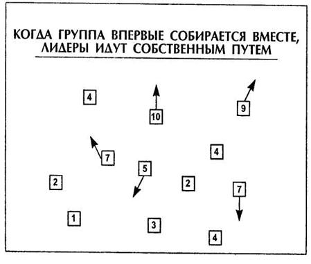 Обычно бывает так: чем большей способностью к лидерству обладает человек, тем быстрее он распознает качества лидера или их отсутствие в других. Приходит время, когда все люди в составе группы сплачиваются воедино и следуют за самыми сильными лидерами. Либо события развиваются именно таким путем, либо люди покидают данную группу и начинают преследовать собственные цели.
