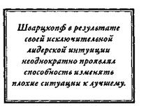 Та разновидность информированной интуиции, которой обладают в день игры тренеры и разыгрывающие полузащитники, напоминает подход, демонстрируемый лидерами. Они видят все через призму лидерства, и в результате инстинктивно, почти автоматически знают, что именно надо делать. Эту способность «читать-ситуацию-и-реагировать» можно наблюдать буквально у всех великих лидеров. Например, посмотрите на карьеру генерала армии США X. Нормана Шварцкопфа. Раз за разом он отдавал команды, которых другие избегали, поскольку в результате своей исключительной лидерской интуиции и умения действовать генерал обладал способностью разбираться в ситуациях и изменять их к лучшему.