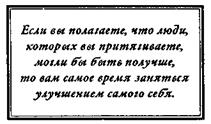 Какими кажутся вам люди, которых вы в настоящее время привлекаете в свою организацию или отдел? Являются ли они теми сильными и способными потенциальными лидерами, каких вы желали бы видеть вокруг себя? И еще: могли бы они быть получше? Помните: их качество зависит не только и не столько от того, как идет процесс найма на работу, каким образом действует кадровая служба вашей организации и даже не от того, каковы качественные характеристики всего круга лиц, претендующих на получение работы в вашей сфере деятельности. Оно зависит от вас. Вы притягиваете таких же, как вы сами. Это и есть закон магнетизма.