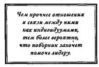 Тесная связь с людьми вовсе не обязательно должна иметь место только тогда, когда лидер общается с группами людей. Она необходима и при общении с отдельными лицами. Чем прочнее отношения и связь между ними как индивидуумами, тем более вероятно, что поборник захочет помочь лидеру. Это один из наиболее важных принципов, которые я все время внушаю своему персоналу. Мои сотрудники в церкви Скайлайн начинали ворчать каждый раз, когда я говорил: «Людей не заботит, насколько велики ваши познания, пока они не узнают, насколько велика ваша забота», — но все равно они понимали, что я прав. Вы вырабатываете в людях доверие к себе, когда устанавливаете с ними крепкие связи и показываете, что искренне хотите помочь им.