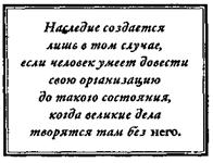 наследие создается лишь в том случае, если человек умеет довести свою организацию до такого состояния, когдавеликие дела творятся там без него.