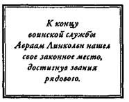 По мере того как время шло, уровень влияния Линкольна на других участников ополчения фактически уменьшался. В то время как другие офицеры показывали себя в деле и получали новые звания, Линкольн обнаружил, что движется совсем в другом направлении. Он начал со звания и должности капитана, но они мало что давали ему. Этот сугубо штатский человек не мог преодолеть закон влияния. К концу воинской службы Авраам Линкольн нашел свое законное место, достигнув звания рядового.