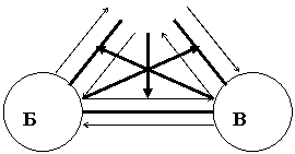 В этой связи обсудим вопрос, как отношения, складывающиеся между людьми, зависят от взаимоотношений, образующихся между другими людьми и, в свою очередь, влияют на них. Воспользуемся для этой цели схемой, представленной на рис.1