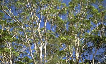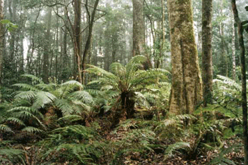 Восточные и юго-восточные склоны Большого Водораздельного хребта, где выпадает много осадков, покрыты густыми тропическими и субтропическими вечнозелеными лесами. Больше всего в этих лесах, как и повсюду в Австралии, эвкалиптов. Эвкалипты ценны в промышленном отношении. Эти деревья не имеют равных себе по высоте среди пород с твердой древесиной; некоторые их виды достигают 150 м высоты и 10 м в диаметре. Прирост древесины в эвкалиптовых лесах большой, и поэтому они очень продуктивны. Много в лесах также древовидных хвощей и папоротников, достигающих 10—20 м высоты. На своей вершине древовидные папоротники несут крону крупных (до 2 м длины) перистых листьев. Своей яркой и свежей зеленью, они несколько оживляют блеклый голубовато-зеленый пейзаж эвкалиптовых лесов. Выше в горах заметна примесь сосен-дамарра и буков. Кустарниковый и травяной покровы в этих лесах разнообразны и густы. В менее влажных вариантах этих лесов второй ярус образуют травяные деревья. На острове Тасмания кроме эвкалиптов много вечнозеленых буков, родственных южноамериканским видам. Ha юго-западе материка леса покрывают западные склоны хребта Дарлинг, обращенные к морю. Леса эти почти сплошь состоят из эвкалиптов, достигающих значительной высоты. Число эндемичных видов здесь особенно велико. Кроме эвкалиптов широко распространены бутылочные деревья. Они имеют оригинальный бутылкообразный ствол, толстый у основания и резко суживающийся кверху. В дождливое время года в стволе деревьев скапливаются большие запасы влаги, которые расходуются в засушливый период. В подросте этих лесов много кустарников и трав, пестрящих яркими цветами. В целом лесные ресурсы Австралии невелики. Общая площадь лесов, включая специальные насаждения, состоящие в основном из видов, имеющих мягкую древесину (главным образом сосны лучистой), в конце 70-х годов составляла всего 5,6% территории страны. Первые колонисты не обнаружили на материке растительных видов, характерных для Европы. В дальнейшем в Австралию были завезены европейские и другие виды деревьев, кустарников и трав. Здесь хорошо привились виноградная лоза, хлопчатник. Из зерновых - пшеница, ячмень, овес, рис, кукуруза и другие. А так же - овощи, многие фруктовые деревья и т. д.