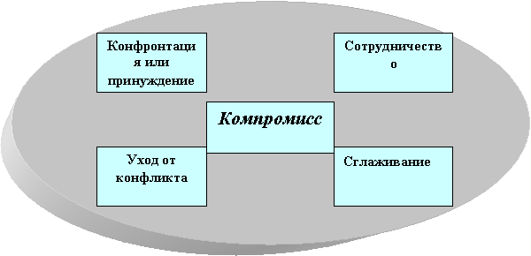 Стили ухода от конфликта и сглаживания не предполагают активного использования конфронтации при решении конфликта. При конфронтации и сотрудничестве противоборство является необходимым условием выработки решения. Учитывая, что решение конфликта предполагает устранение причин, его породивших, можно сделать вывод, что только стиль сотрудничества реализует данную задачу полностью. При уходе от конфликта и сглаживании решение конфликта откладывается, а сам конфликт переводится в скрытую форму. Компромисс может принести лишь частичное разрешение конфликтного взаимодействия, так как остается достаточно большая зона взаимных уступок, а полностью причины не устранены.