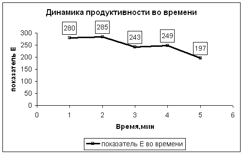 5. Определение устойчивости внимания (определяется по динамике продуктивности работы (Е) во времени):