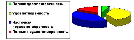 Полностью не удовлетворены выполняемой работой и занимаемой должностью 16% - 6 человек. Причиной полной неудовлетворенности может быть как плохая мотивация, неподходящая организация труда, так и другие психологические и социальные факторы. Этим людям следовало бы задуматься об перемене рода деятельности.