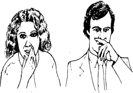 Быстрота, некоторых жестов и их очевидность для глаза зависит от возраста человека. Например, если 5-летний ребенок скажет неправду своим родителям, то сразу же после этого он прикроет одной или своими руками рот (рис.4). Этот жест "прикрывание рта