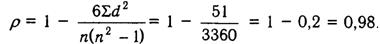 где d — разность рангов ряда х и ряда у т.е. (Rx- Ry).