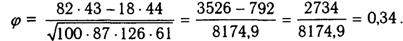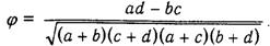 Коэффициент четырехпольной корреляции j может принимать значения от 0 до 1, причем знак получаемого j не принимается во внимание.