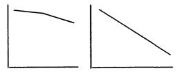 Анализируя выраженную на графике основную тенденцию в ее приближении к прямой, можно заметить, что метод не дает меры наклона, угла, который образуется между полученной после сглаживания приближающейся к прямой ломаной и осью абсцисс. Между тем, узнав величину этого угла, исследователь получит информацию о том, с какой скоростью изменяются изучаемые явления во времени: чем круче наклон и соответственно чем меньше внешний угол сглаженной кривой с осью абсцисс, тем больший путь проходит за единицу времени изменяющийся процесс. Это хорошо видно на рис. 5.
