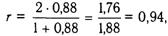 где rSB — коэффициент с учетом поправки, а — коэффициент, вычисленный при коррелировании двух половинок методики. Если этот последний равен 0,88, то после поправки Спирмена—Брауна коэффициент будет равен 0,94.