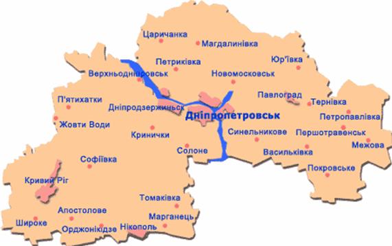 Днепропетровская область образована 27 февраля 1932 года. Расположенная в юго-восточной части Украины, в бассейне среднего и нижнего течения Днепра. Граничит на севере с Полтавской и Харьковской областями, на восходе – с Донецкой, на юге – с Запорожской и Херсонской, на зході – с Николаевской и Кировоградською областями. Занимает площадь 31 тыс. кв.км., то есть почти 7 % площади государства. Население приблизительно 3893 тыс. человек. Днепропетровска область Делится на 20 районов, имеет 19 міст, в т.ч. 10 областей подчинения, 54 поселка городского типа, 1452 сельские населенные пункты. Выгодное географическое положение, значительные залежи полезных ископаемых, розтушування в физико-географической зоне, благоприятные почвенно-климатические условия, густая транспортная сетка оказывают содействие развитию хозяйственного комплекса области. Центр Днепропетровской области – город Днепропетровск. Он расположен на берегах нижнего течения судоходного Днепра на пути между угольным Донбассом и железорудным Криворожьем. Город есть наибольшим в Украине и одним из наибольших в мире центром черной металлургии и звязаних с ею областей. В промышленности занят 32,7 % всех работающих, на транспорте 9,4 %, в строительстве 9,2 %. В городе есть два мощные металлургическому, два трубопрокатных и коксохимических завода, функционируют большие предприятия трудного машиностроения по выпуску металлургического оснащения, станкостроительный, електровозний, вагоно- ремонтный, парового машиностроения, трудных прессов. Поверхность области – волнистая равнина с развитой долинно-овражной сеткой. Геоструктурну основу территории области составляют три региона. Правобережная часть находится в границах Приднепровского и частично Кировоградского блоков Украинского щита, составленных метаморфическими и интрузивными породами докембрійського фундамента, на поверхности которого залягіє покрив осадочных відкладів. Северо-западная часть левобережья представляет собой склон Дніпровсько-донецької впадины, юго-восточная – Донецько-Орельськую седловину. На поверхности фундамента, погруженного на глубину до 4-5 км., залегает толща осадочных пород от девона к неогену. Почти сплошной антропогенный покров представлен преимущественно лесовидними образованиями, а в речных долинах – песчаными аллювиальными отложениями. Поверхность области – волнистая равнина высотой 100-200 г. На северо-запад – отроги риднепровской возвышенности (вис. До 192 м), которая постепенно снижается в юго-восточном направлении и обрывается к долине Днепра крутым уступом. На крайнем юге эта возвышенность переходит в Причерноморскую низменность. Левобережная часть области занятая Приднепровской низменностью, на крайнем юго-восток – отроги Приазовськой возвышенности. В целом поверхность очень расчленена глубокими долинами речек, балками и оврагами. Область имеет разнообразные полезные ископаемые, за запасами некоторых из них, в частности залез, и марганцевых руд и каолина, сядет ведущее место в стране. На территории Днепропетровской области – Криворожский железорудный бассейн и Никопольский марганцевый бассейн. Важное промышленное значение имеют также залежи титановых, циркониевых, никелевых и кобальтовых руд и бокситов. Область добре забеспечена топливными ресурсами (каменный уголь Запад