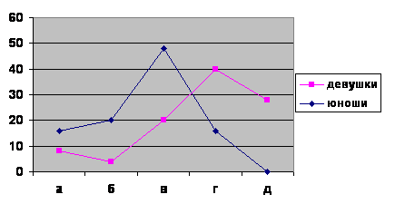 Количество анкетируемых – 50 человек. Из них 25 юношей и 25 девушек, студентов высших учебных заведений города Одесса Один человек в каждой группе составляет 4%. Один человек со всего массива составляет 2%.