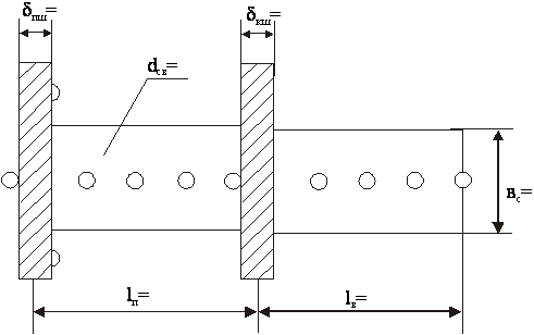 В пределах расчетной схемы имеется 7 свай площадью F, м2 каждая и шпунтовые ряды толщиной