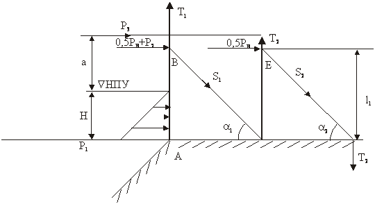 Рис. 21. Расчетная схема контрфорса с одиночными подкосами.