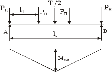 Приходящаяся на один прогон сосредоточенная нагрузка от подъемного усилия Т и веса подъемника
