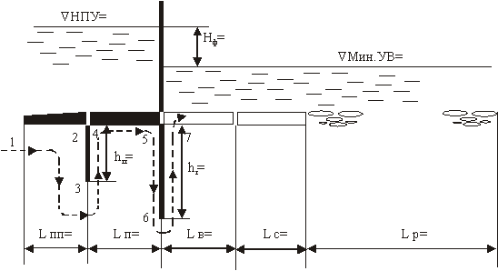Размеры подземного контура плотины устанавливаются фильтрационным расчетом. Расчет ведется в следующей последовательности.