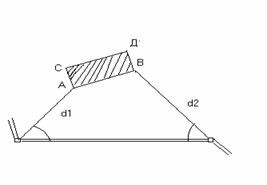 Пример. При выносе в натуру точки способом прямоугольных координат перпендикулярно строим теодолитом Т-30 одним полным приемом. Проектные отрезкиS1и S2строим на ровной горизантальной плоскости. точки закрепляем колышками, на верней части которых прочерчивали карандашем линии. Вычислить погрешность выноса в натуру точки А , если расстояние S1= DY1и S 2=DX2 , S1= S 2= 20 м.