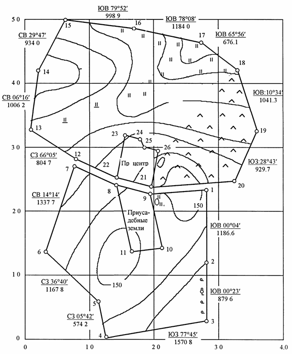 В соответствии с требуемой точностью проектируемых площадей и характером границ участков запроектировать: