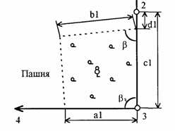 2.1.2 В соответствии с рисунком 2, по результатам измерений в натуре (приложение Б), вычислить площадь сенокоса с прудом и площадь проектируемой дороги в овощном севообороте.