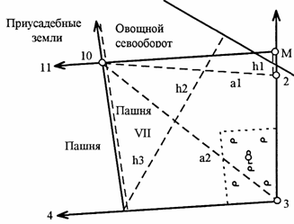 2.2.1 В соответствии с рисунком 5 определить графическим способом площадь пашни восточной части поля VII.