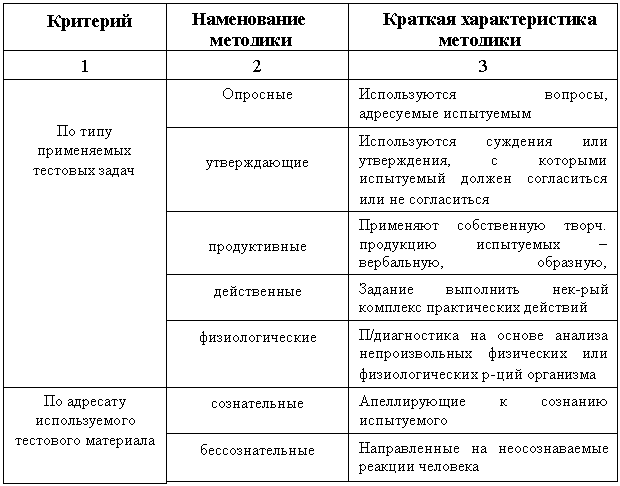 1. Бланковые методики – составляют большинство из них. В них испытуемому предлагают серию суждений или вопросов. По полученным ответам судят о психологии испытуемого.