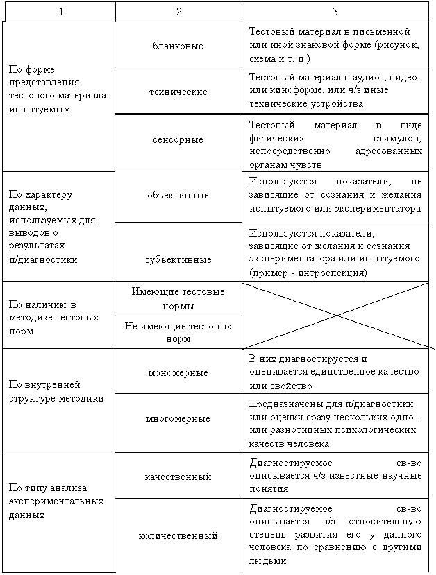 Самую общую схему классификации психодиагностических методов можно представить в виде следующей схемы: