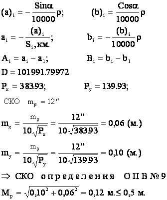4.1.2. Расчет точности определения высоты опознака ОПВ № 9 полученного из обратной многократной засечки.