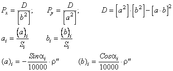 | Направление | ai | (a)i | (b)i | S, км. | ai | bi | a2 | b2 | ab |