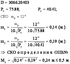 окончательное значение высоты опознака равно среднему весовому из значений высот получаемых по каждому направлению, то СКО окончательной высоты равна: