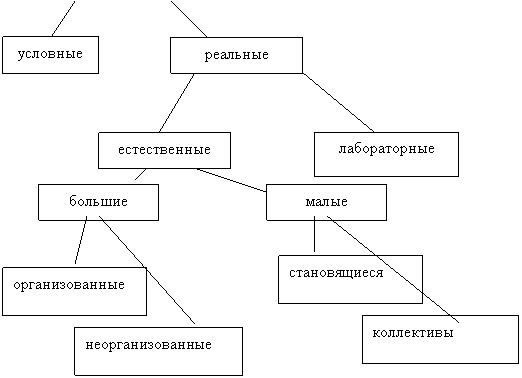 Все, начиная с рубрики “реальные естественные группы”, представляют объект исследования в социальной психологии.