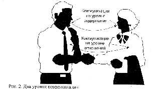 2. Любая коммуникация имеет содержательный аспект (уровень понимания) и аспект чувств (уровень отношений. Последний уровень определяет первый (Рис 2).